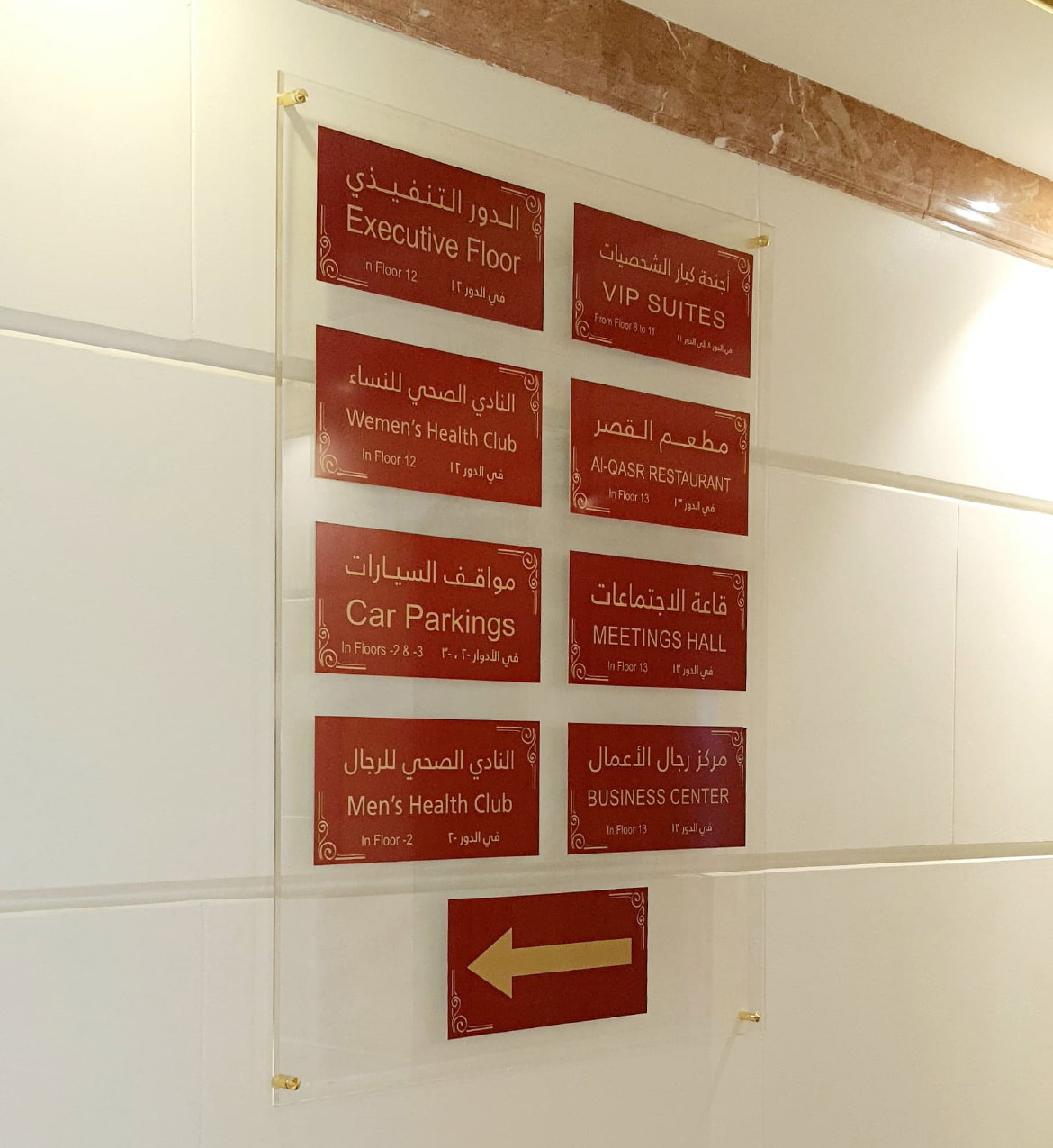 - واعمال اللوحات الارشادية من الاكريلك والالمنيوم الذهبي او الفضي وغيرها