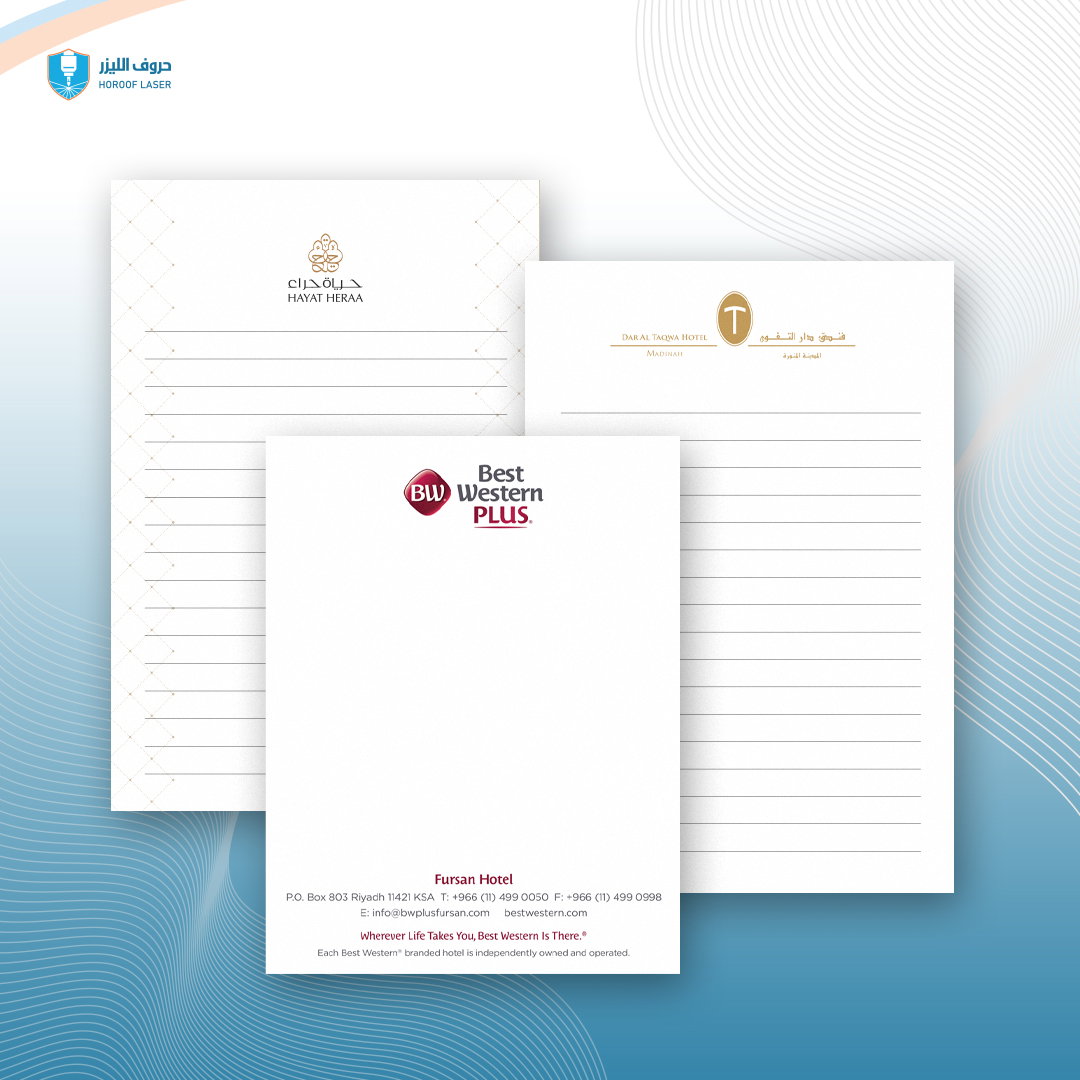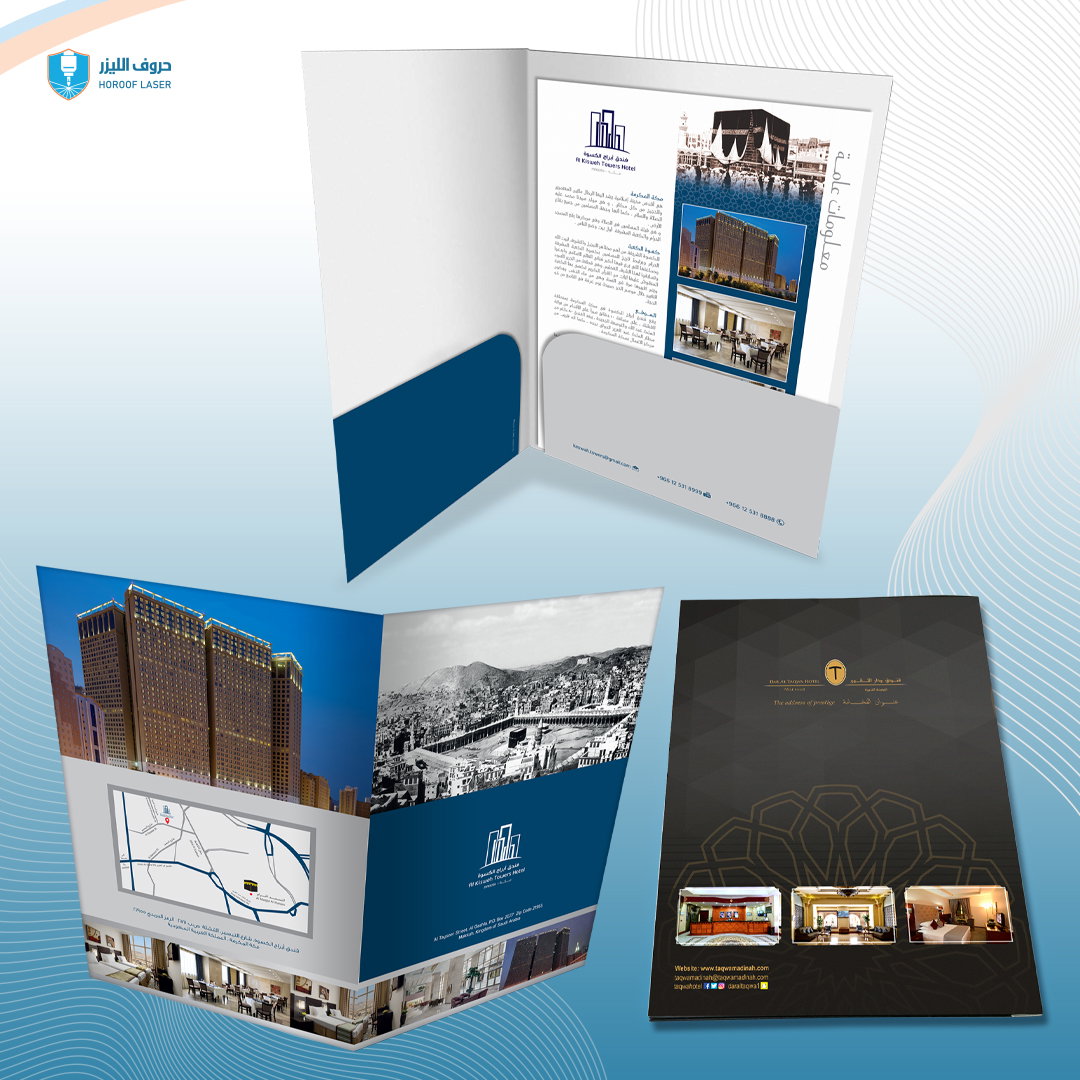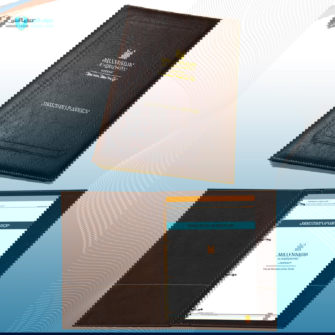 - كالجلديات الفاخرة والفولدرات وطباعة وتنفيذ دليل الخدمات والنوت للغرف